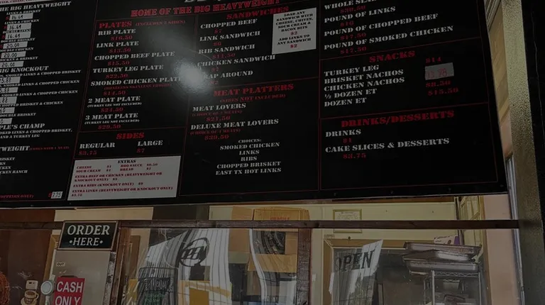 Cash only.....Cash only....Cash onlyCustomer service- 10/10Wait time- minimal Portions - Generous Pricing - Fair market pricesCleanliness- 10/10I'll never eat at any other BBQ places again. This is the 1 & my forever spot. Finally a place that will give you what you pay for portion wise. Everything about this place impressed me from the sweet cashiers to the food. This place could slap some sauce on a piece of bread & I'd eat it lol. My food is the freaking bomb - straight up! Don't walk but RUN to this place. I live in farmers Branch and don't care how long the drive is, I've got to try everything on the menu now. I ordered a rib, sausage & brisket knockout