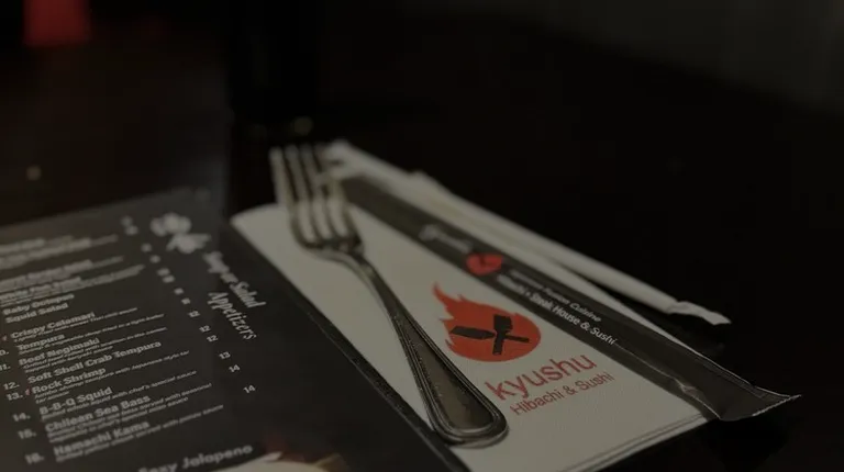 We met some fam at Kyushu's for an early supper. Big ol' parking lot with a boba tea place and an Asian store just a few doors down. Pro's: Lots of hibachi stations Get both noodles and rice Sushi roll portions are plentiful Hibachi portions are plentiful Chef's are friendly, funny, & coolCon's:Seating is way too closeFried rice was bland, food okPrices were on the expensive side Push to upsellThis place is pretty far out of my way but I might go back at some point. Any hibachi is always loud which isn't my fave but I knew that going in. I am a pretty heavy tea drinker and my glass was always kept full! I can't complain about too much here!