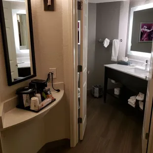 Staff was very friendly during check-in. Unfortunately upon settling in my room a stepped in to a very wet spot of water on the carpet. It was at least 6 feet wide. The room had mildew smell. My son had a room on a different floor and had the same issue.The elevator had a strange smell as well. I also noticed a lot of light bulbs out in the hallway.I had a great night sleep. There is free breakfast as well.