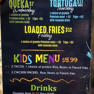 Breakfast tacos- only comes with 1 meat and cheese. You pay extra .50 for everything else- potatoes, cilantro, etc... bought 10 breakfast tacos and cost me $40. Hope these taste good for the price!