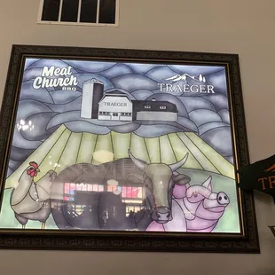 a neon sign that reads meat church