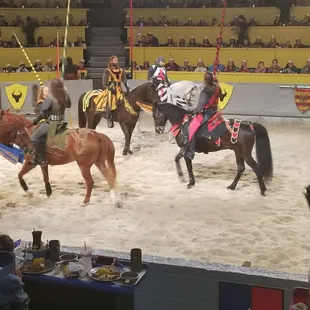 Took the kiddos during the Christmas break. Wanted to do something different. From the moment we arrived...the employees were in full total cast mode.... I underestimated the crowd that would have been there... but the show was awesome...entertaining..full of action....I felt like I was in a King Arthur movie.... Food - half of a chicken.. corn...tomato soup potato log and garlic bread....The pound cake was Amaze balls...Food was good and fresh when it arrived... the only issue I had with the food was that my row got our chicken last bcuz they ran out and it took a long time to come out ...but the staff was very apologetic and gv us dbl portions of all the sides...My daughter was crowned Queen of Love and Beauty and got a sash and tiarra...she was super stoked and I was just as excited as she was... great experience... it's expensive but WORTH EVERY PENNY