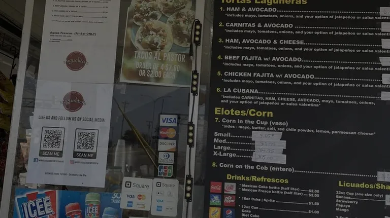 Elote en vaso, tortas y tacos al pastor