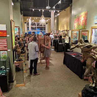 Beautiful pieces of artwork, and an amazing space. This gallery is quirky but elegant, filled with artwork all over the walls but well thought out spacial and color palette wise. It is big enough to house a lot of artists and their different mediums but small enough to feel intimate and not to be too overwhelming. I really like how this gallery has affordable pieces available as well as the tens of thousands of dollar pieces that really them the make money. Although it is normal to have a range for cost, the range of this gallery is actually rather big but it also makes it more inviting and approachable. I would have normally given this gallery four stars as that is my go to normal rating for great places but I am giving this five because of how wonderful they were to the Yelpers at the event last night. Any establishment that inviting, even though they have THAT much liability, is serious a five star joint! :)