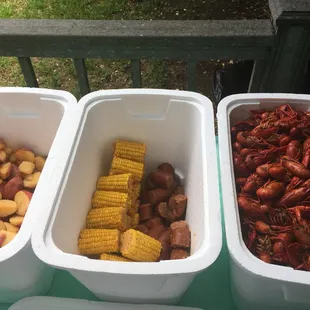 Seafood Platter: Snowcrab, Crawfish, Shrimp, corn, sausage and potatoes.