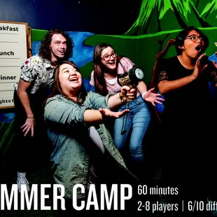 First time doing an escape room, someone else made the arrangements, and all of us had a great time.Our group had 8 people, so it wasn't small, and we did the Summer Camp room. It allowed a full hour, and you get 2 clues plus a 3rd if you check in on social media (done!). We ended up getting pretty stumped at one part, using 1 clue, and then finishing with about 14 minutes to spare. I think with a small group - 2 to 4 - it could have been very very challenging to finish in time - but we had a blast with our group. Super creative and well-thought-out room.It's notable that we had a 10 PM timeslot, so we had dinner and drinks first, and I'm sure having drinks beforehand made it extra fun. =) There were a few folks finishing rooms when we arrived, but I think we were the last ones out. I don't know if that's normal for a Saturday night, but I would assume that 10 PM isn't the most popular timeslot (lol).The intro videos were helpful, especially for newbies like my wife and me. The rest of our group had done at least 1 escape room before, btw.Karina was our game master and she was great - definitely on point, friendly, and professional.I went from not being the least bit interested in escape rooms to very much wanting to do more of them! Super fun with a fun group and pregaming - highly recommended.