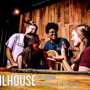 First experience at an escape room. We picked jailhouse and there were only two us. We did the 45 min game. They had videos for us to watch before we started. I thought that was helpful. Be warned if only two, they split us up into different cells. That was unexpected so it kinda through me for a loop. The room was cool. Had the old time jail vibe. Sadly, we didn't escape. Lol I like the screen with the time on it. Also with 45 mins you kinda get unlimited clues. We had to get a lot and still didn't escape lol although we came very close. I forgot the young ladies name that was our game host but she was very nice and told us we did god even though I thought we didn't. LolCommunication is the biggest thing though for these so just make sure you go with someone or ppl that will communicate with you!!!! But also have fun and enjoy the game!