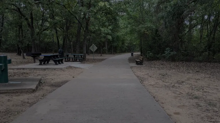 Not a great park but definitely a good one as it has a small parking lot and a very tall piece of playground equipment in the usual bright primary colors that make it attractive for the kids. I didn't get too close to take pictures today because it was in use by two moms and their kids. Creepy single dude taking pictures, not a great look.There are several picnic tables scattered around and some charcoal grills, though they're mostly under the trees which will make for some interesting smoke situations.The best feature here is the walking trail that goes quite a distance and links up all the way across 35W to the top of the country club. Very, very cool.[Review 16029 overall - 216 in Texas - 1534 of 2021.]