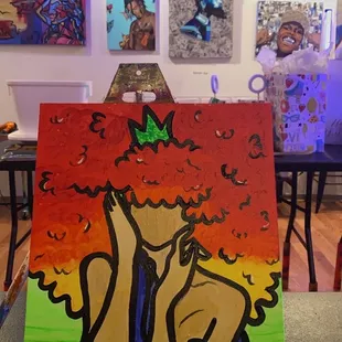 We came in and Dee was our instructor. Started on time with a fun process for creativity. The music the whole time was on point and live. The room had plenty of inspiration on the walls for you to be inspired with your own piece. I believe it's RSVP only so it was a very small and intimate setting. This was a spot for BYOB and BYOF. Step 1: Come in and select which canvas print you wanted. She had plenty that were already outlined. Step 2: Select the colors you want for your piece. Step 3: Listen for quick directions on where to begin then continue. It was so easy and fun because she moved around the room to help with the process in assisting only when needed to and helping with mixing colors. We will definitely be back!
