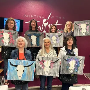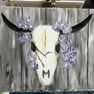 Always a fun night out with the girls! What's better than wine, some snacks and acrylics? We painted a flowery cow skull.