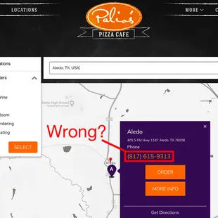 This is for the Aledo location.The rating is for mis-information.I called to see if they were open and taking orders. I called the number listed "on their website". I was greeted with a recorded message in I think, Spanish.I called several times in a row and got the recording each time until maybe the 5th time I called, then a woman answered "Hello?"I asked if this was Palio's and she told me I had the wrong number.Offline, I confirmed multiple times that I was calling the number listed on their website (817-615-9313).If I have made an error, I will apologize/remove this review and try this place out. If however, I am correct, I hope the restaurant corrects their website and I would love to try them out.