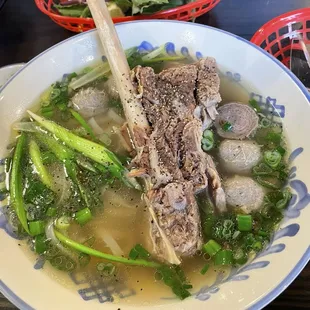 Coconut coffee, egg roll, kids combination pho, signature pho, egg and bone marrow