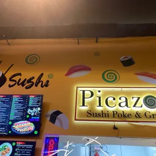 It was our first night in Dallas and we found this place by accident. It's a food court of sorts with Picazo's, El Calle, and a bar. We ordered sushi and overall it was pretty good. We had a Mexican roll-spicy; Stars roll-yum; Cajun roll-too much rice; California roll-my kid liked it, and unfortunately I can't remember the name of the last roll but it was surprisingly good. It had cream cheese and I am anti-cream cheese in sushi. We also ordered some Casa Madero wine from the bar. We had a bottle of the 3V and a bottle of the Merlot. I recommend the Merlot with the sushi. Overall for such a low key strip mall place it was tasty and not too expensive. I would come back again.