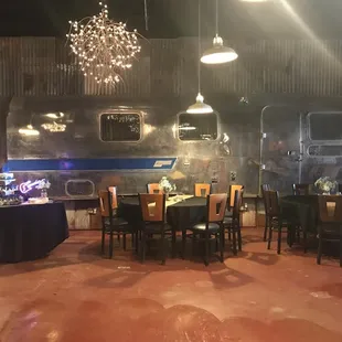 Any time I leave a 3-star review, feel the need to point out that Yelp defines 3 stars as "A-OK.", and that's exactly what I thought this event space was, A-OK. I was here for a wedding, as a guest. Despite being an odd location, and a bit of a drive, I liked the adventure aspect. As we pulled up, we could not help but to wonder what is inside this rather non-descript building. Inside we found a large seating area, a stage, a bar, and doors to more rooms. One room was additional seating, that lead to a small outdoor area. This is were the ceremony was, and except from the sound of race car motors (I was told there is a racetrack nearby, in fact there are two - Texas Raceway & Kennedale Speedway Park), it was rather pretty.After the ceremony we returned inside, where I had the chance to wander a bit. I should have taken more pictures. The pinball machines, on the walls was interesting. The Airstream trailer being used as a stage was quite clever. There was another large red truck against one wall. Not sure what it was used for, and I forgot to take a closer look. There was also a pool table, maybe two, which many guests took advantage of. The line at the (cash) bar got quite long at times, and it actually deterred me from getting a drink. I only saw one bartender at the bar, so I stuck to the self-serve iced tea. Being a cash bar (i.e. not open), I would have thought it would have been staffed better. When prompted, we lined up for food, and were served. I thought the servers did a good job and gave off a friendly vibe. I'm assuming the food was catered, in-house, by Red's, and so your experience may differ based on the menu. I thought for what it was, chicken and beef tacos, with beans and rice, it was a little sub-par. Not horrible, just not all that great (for being in Texas). Also, the re-fried beans seem to have been a little scorched, leaving a slightly funky flavor. Apparently, in the past, Red's used to be a full time restaurant and bar. I think they lost their touch, or maybe never had it. I would seriously consider other food options, or perhaps have it catered from outside. It would be worth the extra fee. So, as a funky Texas event space, A-OK. Bottom line: Good choice if you are looking for a road-house feel for your special event.