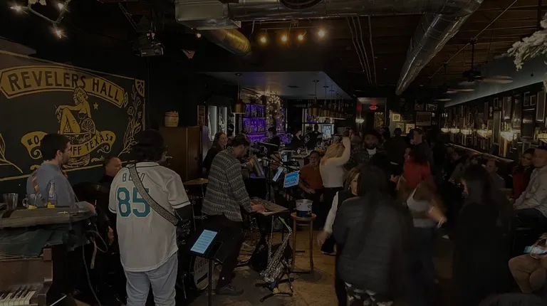 I can't recommend Revelers Hall enough! If you are into live music, especially jazz, this is the place for you! We had no idea it was here but just happened to hear an incredible big brass band playing. There wasn't anywhere to sit because it was fully packed inside and out, so we just loitered around a bit. The server came by to check on us anyway and after a bit we snagged a seat and ordered some beers and food. I was expecting the food to be average bar grub given the focus on the music, but it was actually delicious! The flatbread was really good and the cheese fries were to die for.Note - there is a small $5 charge for the music that helps the business pay for some good talent. It's totally reasonable. They have music 7 days a week, including afternoon and evening on weekends.