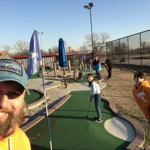 Came for the go karts; absolutely LOVED the miniature golf. Fun course with hills, "sand pits", water features....very clean and well kept. It was my 8 yr old daughters first golf experience and she had so much fun. The weather was perfect as the sun set...I did notice umbrellas along the course for when shade is needed which is nice and there's benches. Definitely will go back.