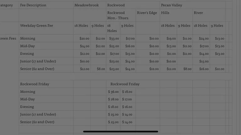 Course rates, as listed on the website