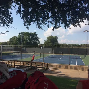 Wow! This place is beauitful! If you want to play Tennis, please come here. Not only can adults play, but they have an entire area for kids to play tennis. They have the nicest courts for the kids blocked off in the front of the recreation center. The nets and courts and even kid friendly. They have tons of courts where areas are blocked off for private tennis lessons! They have an inside tennis shop where you can buy rackets and get your rackets gripped. In addition, you can buy tennis balls, tennis gear and if you leave your water at home, they have ice cold poweraid and water there inside the shop. This place is super clean and well maintained.