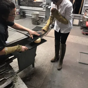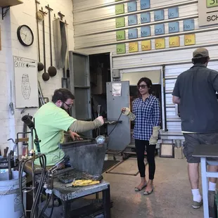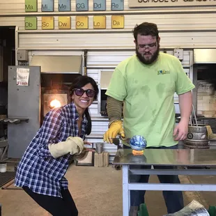 Maddie and Megan (forgive me for spelling errors) made our Groupon glass blowing experience fun but safe in February. Picking up our projects (heart and paperweight) was organized and efficient.We loved the experience and would love to take another class. Unique and enjoyable for a date night or a girl's night out!