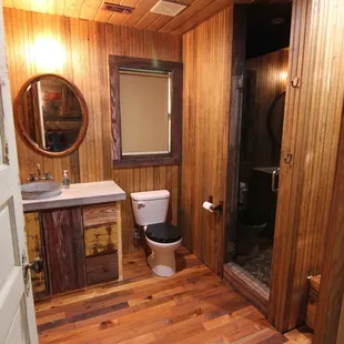 My husband and I booked the Bootlegger's Shack, which is anything but a shack. Very well-done in a rustic style with modern amenities. There's a cute kitchen with everything you need, and the sinks have washtub basins - very creative. In the bath, the large walk-in shower has 2 shower heads and good water pressure. There's a front and back porch, with a private hot tub on the back porch. We got a great night's sleep because they have a very comfortable king-size bed. We wanted to get away from the city and do some star-watching. This place is right on a creek, lots of land - so it's very quiet and the night sky was lovely! The couple who manage the property met us when we drove up to the gate and led us to the cabin, showed us around and were very nice. David, the owner, was wonderful and very responsive to our reservation request. Highly recommend!!!