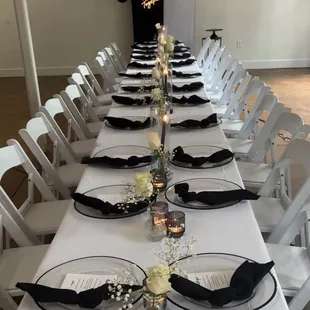 Very nice place to celebrate any event! I had about 60 guests of all ages that were comfortably seated with renting the same amt of table (6) + chairs (30) that the venue provides, which I set-up to mirror each side of the venue space. They were very accommodating with my request for an additional hour that omitted cleaning after the party before mine. Highly recommend and would definitely rent this space again!