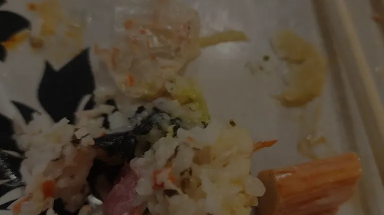 The plastic was left on the crab meat in my rainbow roll. Smh