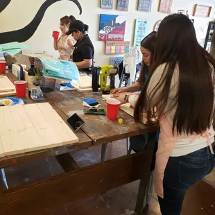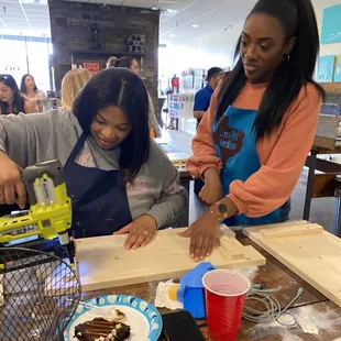 When my bestie insisted on an in-person birthday party during the 'Rona I 1. gave her serious side I and suggested a drive thru party and 2. ultimately acquiesced since that's my girl! Texas Wood & Wine was the perfect place since it gave us room to spread out while still having a fun time!The way it goes is you select your design, build your board (nail gun and all!), stain, paint, and viola! Enjoy your masterpiece!We went for brunch and set up food and mimosas. The owner/instructor was so sweet and made sure we were safe (nail guns and champagne, hello?). I absolutely love my board and whole heartedly recommend them for your next socially-distanced girl's gathering!