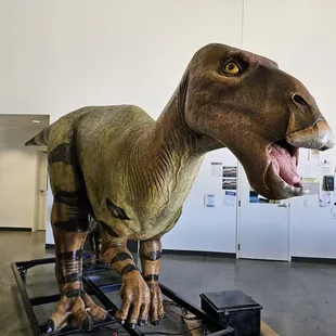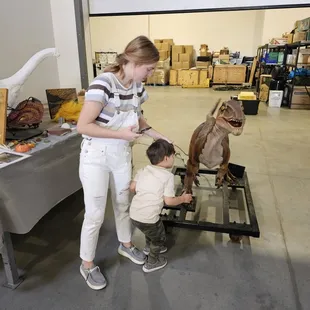 TLDR: This is a MUST do!!! Buy tix and make reservation online, or call in. I wish I could give the Dinosaur Company 10 stars because that's what they deserve! A local friend recommended it to me after seeing my posts on our visit to the Heard Museum. We used to live in Texas but moved out of state a few years ago and decided to come back for a visit. I found out this place opened up for tours in 2021, so it made me feel better knowing that I didn't miss out when I was here! This place is just as much fun for adults as kids, maybe more?? It's located in Allen and close to the 75 in a warehouse/business district. You can't miss it because the building has giant dinosaurs all over the outside, which got me excited as we were pulling up! My 4-year-old loves dinos, but seeing dinosaurs move is next level! There was plenty of parking on a Friday afternoon. I originally booked our tour reservation for 1 pm and called in to reschedule because we were running late from a passport application appointment. Lauren Billings, one of the owners, was so nice to reschedule us for a couple of hours later and she was also our tour guide! When we arrived, we were greeted by Lily, who was so sweet to show us around while we waited for our tour (we showed up early), take pictures for us, and tell our son all about their built-in display cases on the wall (preserved dinosaur poop!). They had a couple of dinosaurs in the lobby dressed up for Halloween and they were also getting ready for some birthday parties. Make sure to look up while in the lobby because there are dinosaurs placed overhead! The gift shop is so fun and carried a bunch of toys and books I hadn't seen before. The inventory they have is actually quality, as opposed to just junk that will end up in a pile. CeCe the Dinosaur is the star of the show (in the lobby)!Before you enter, there's an animatronic dinosaur, I think it was CeCe as ell, and you can push buttons and make it move yourself. We had our own little private tour probably because we changed our original tour time, so it was just Lauren, my husband and I, and are 4-year-old. We were told to walk between certain lines as it's a working dinosaur factory. The tour is informal, and it was more a conversation peppered with our random questions, Hobie for some reason knowing which ones he could sit on and which ones he couldn't, and us getting to see some being worked on in the back. There were also giant insects, including spiders, ants and butterflies. The dinosaurs are built to scale (from what is known of them), and the colors are vibrant, the movements are so real, and they even have sounds. There's also a sensory table with teeth, feathers, and other things that kids can touch and explore. Their dinosaurs end up all over the nation and the world! We had SO. MUCH. FUN. I really could have stayed there for a lot longer. We perused the gift shop and thank goodness I had to limit what we bought to what we could put in the suitcase, because I really wanted to buy ALL. THE. DINOSAURS! We ended up with a couple of books, a magnet bc that's how we remember all our trips, and we got a little free dinosaur 3D printed toy as a souvenir. I've read reviews that it's hot in there. It was about 85 degrees the day we went, but the warehouse was comfortable. I wish I could have my birthday party there. That would be such an experience. Thank you so much to the Dinosaur Factory family for being so welcoming and accommodating. I've already told ALL my friends about this place, so I know they will definitely have some little visitors in the future!
