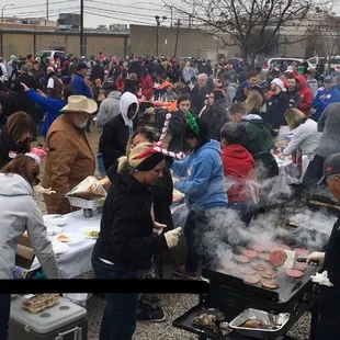 Having fun feeding the homeless in Fort Worth.