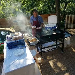They came out to our Open House last week. The food was amazing! Everyone loved It! Both people that were there cooking were professional and efficient. We will definitely call them again. Worth every penny!