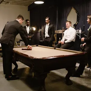 Groom's Room - complete with pool table, lounge area, and movie projector.