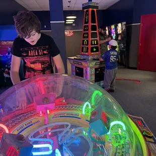 I'd love to tell you that I have no firsthand knowledge and this was all about the kids, but....well...I played as hard as they did and regret none of it. I miss the days of gameworks and other destination arcades. We tried Chuck E. Cheese(man that place has gone downhill since my childhood), we tried Itz(even back when it was amazing pizza factory it didn't compare)....We've tried them all. This place was so much smaller, we didn't think there would be much of a selection or comparison. Like most of my 5 star reviews, I was happy to be wrong again.You pretty much pay a cover fee to enter the game floor and it's unlimited play - the small token area is all ticket machines for prizes, and it's relatively easy to win something for the kids without continuously pumping quarters with little payout. They allow folks like me to lock into nostalgia mode while including the kiddos, but they also have newer/fresher games as well. Pretty impressive selection considering the size of the building - it was way more than we expected, and we will certainly be returning.Bring cash- they like cash.... They sometimes even appreciate the phrase "cash is king." **coughHINTcough* (although their website only shows a discount for wearing one of their t-shirts currently)