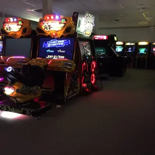 This is great. It's obviously a mom and pop small business. There's nothing fancy, but the games are awesome. They have drinks and snacks likr CANDY, microwave popcorn and microwave samdwiches like cheeseburgers and cheese steak. I brought the kids here today because there isn't any school. Today's Friday, the first day of spring break. And there has been some traffic, but its not busy at all right now. We have the place to ourself. I'm having a blast and I'm 43. Tons of racing tons of shooting and tons of classics for the parents. The all you can play for 14.50 is well worth it.