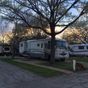 We recently had a great visit here. We had driven in from Denver pulling our travel trailer and arrived a day earlier than planned. We also arrived at 9:30 pm and they were quick to get us set up and into a spot.The property is beautiful with tons of trees and residents with well-groomed lots. There isn't a ton of room for dogs but were able to make do with what they had for dog walking area and out two dogs.This resort is classy and they have quite a few rules. Most of which is common sense and we had no problem abiding by them. The pool and shower facilities are nice and most importantly it was quiet at night and easy to rest. They also helped us with a late checkout which we were grateful for as my wife was running a marathon the day of checkout and there was no way we would be out in time. I would highly recomended if you are in the Dallas/Arlington area.
