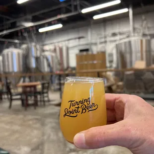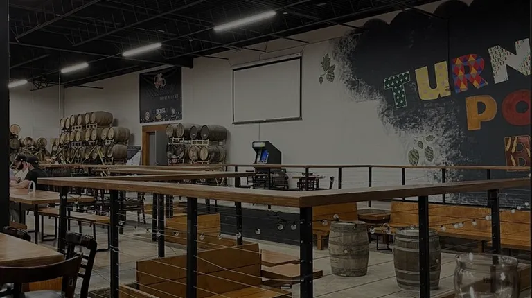 Turning Point has a great brewery atmosphere. Industrial fermentation tanks, barrels, and tables. Relaxed, casual, craft beer vibe. There is a car show/event on at the moment that fun to look at. My only complaint is little to no food at the bar. However there are local eats around.