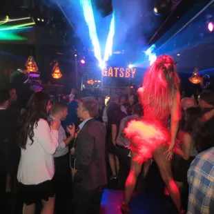 Decided to go here for an UYE. I don't remember what the old Plush looked like so I can't say if it's nicer than before. The club looks nice--kinda "cozy." Upstairs had a good view of the dance floor and 2 private rooms with balcony access as well as a pole at each table (upstairs and downstairs). That can get quite dangerous with drunks who think they can pole dance! haha. There was one central, elevated VIP table in the front of the dance floor. If I were to get bottle service that'd be the table I want! DJ that night played a variety of music, awesome beats. Loved it. No EDM/techno/house stuff (from the time I was there)--thank goodness! I was a little disappointed as I thought a Gatsby club would show more of a Gatsby theme besides the waitress uniforms. One dancer seemed high and all she did was bend over a majority of her time (my eye caught her bare buttocks many, many times). LOL. (Maybe I watched too much Gossip Girl & pictured fancier, themed parties with fancier decor). Themed or not, it still looked like a typical club in Dallas. Awesome lights though, but be careful where you stand on the dance floor--might get blinded by a beaming light! Although they kept addressing that the dress code was "dress to impress" I saw girls come in with jeans and plain tank top, flip flops, etc.Bouncer told us that Friday nights are girls' night (free cover), but when our friend met us up they tried to charge her. Miscommunication between staff maybe? Besides that, the staff was very friendly and helpful that night, but hope that lasts.If I were to go clubbing again (I've retired) I wouldn't mind gathering the girls to go here because of the music and diverse crowd.