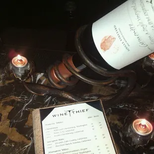 There is seating outside with comfortable chairs which will allow you to smoke your cigar and enjoy your wine. Oh and I almost forgot!!! There is an appetizer and dessert menu available in the Wine Thief, courtesy of Bob's Steak and Chop House. The calamari is delicious and the desserts are massive (bring a friend or two to help devour these sweets)Wine Thief is one of the Best Kept Secrets in Fort Worth!Where else can you find a secret hideaway, that serves such a selection of champagnes and wines, TX Whiskey (yes, other beer and liquor too), and has a Cigar Menu for the outdoor patio! BTW... did I mention Bob's Steak and Chop House Desserts? Great friends, great wine, and Bob's Desserts!!! On a Patio! In Fort Worth, Texas! With a cigar! I'm in HEAVEN!They have their own menu, but I've pretty much told you my bliss... ON a Patio! In Fort Worth! LOL!Plus... from the TIPS, Ryan F was correct... Rachel is the best! Certified Sommelier, knows her stuff (wines and scotches!), and can handle the entire room without even blinking! She truely is the best!This place is in the Omni! It's for people looking to show how deep their wallet is... not for people sticking to their budget! So be prepared to pay... and tip well for oustanding service!