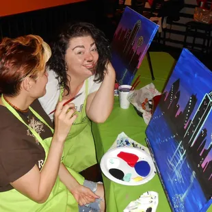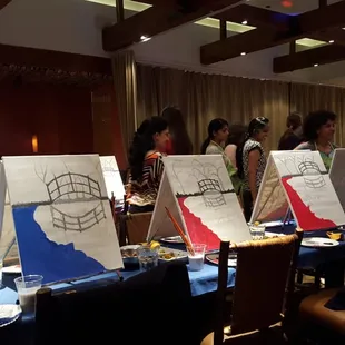 Felt like I was in a kindergarten class...the instructor talked to us like we were 5. "Now this is baby brush....put baby brush in the water cup". "This one we'll call big brush"! "Put big brush in your cup". I turned to my friend and said....no wonder they do this at bars...you have to have a drink to get through 2 hours of your kindergarten lesson. Once I was about 3 drinks in I just ignored the instructor all together and had a blast. The concept is great, I like that they move around to different places that have bars and not byob like Painting with a twist.I'll take another class....but won't take my seat until I've had a few drinks, thats fa sho.