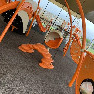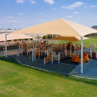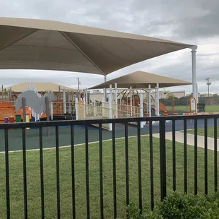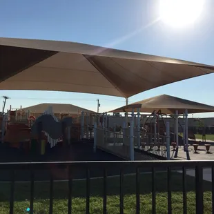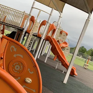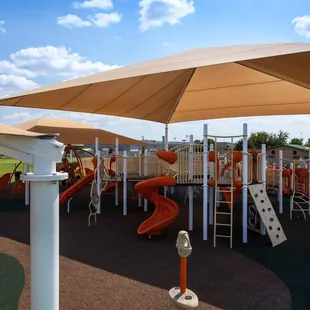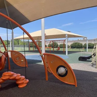 Amazing playground for little ones. I think this is the first playground we've been to where the shade structure is actually big enough to cast shade on most of the equipment, even in the late afternoon when the sun is setting. Lots of fun things to play with and on. We'll definitely go back when we're in the area again.