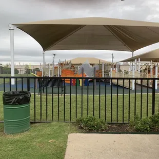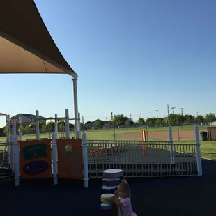 Little hidden gem. This park is amazing. The playground is surrounded by a gate only one entrance in and out. Which is reassuring to parents. In front of entrance there is a boys and girls bathroom, very convenient. The playground has a cover on top that keeps the sun off our children's delicate skin. What a great idea especially battling this Texas heat. There are 2 baseball fields to the left and right of the playground. This is perfect for parents who have more kids to occupy they can play in playground and parents can still enjoy the game. Love this park. It's perfect for all ages. I will take pics next time. I was enjoying playing in the there. Also great for adults to play in as well.
