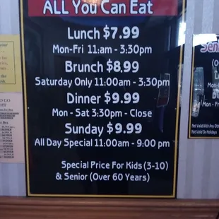 Yes buffet to-go menu.