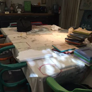 Our 1st attempt at painting. Vicky was less then attentive questions. Very little direction or guidance. She was more concerned with stocking and cleaning then participating with the group. We got most of our influence and technique from the more experienced individuals (which were strangers) so it was very awkward. Our group made several comments and attempts to engage the "teacher" but she was just not to welcoming. Other then to tell us "that's way to much paint, you only need a little". Iy is not something that I would recommend unless your willing to guess as you go.