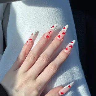 I love this place!! I have been getting my nails done by Jenny for a couple months now, but have had my nails done by a few other ladies at the salon as well. Everyone has great attention to detail and makes sure my nails are perfect every time! The prices are reasonable and I am always able to get an appointment. Never felt like anything was rushed. Will be a lifelong customer Here is a picture of nails I had done for Valentine's Day :)