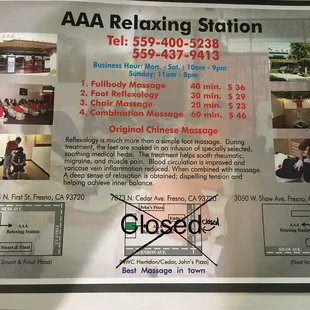 I had a few hours of spontaneous self care time. I've been having severe neck, shoulder and back pain. Normally go to med spas for my massages but I was a bit desperate for relief and was looking for something flexible on time, quick and inexpensive. I've heard so many great things about this business and I was around the corner so I called and asked if they had chair massages and how long the wait was. The lady was kind and mentions the times/prices and said there was no wait. Arrived around 1120am they were not busy. They have a log sheet in the front desk. You choose the massage type, minutes, pace and intensity. I had a chair, 40 mins, slow placed, level 4 intensity. I was taken to the massage chair after I filled out the sign in sheet. My masseur was nice. It was my first chair massage. Later during the massage I realized since my neck was also a problem the chair massage provided no neck support and it might have contributed a bit more to my previous pain from the pushing and pressure movements from the massage. I felt he did more of a deep tissue massage. If that was a level 4 I'm curious as to what a level 7 is. I felt I received the opposite of the slow placed I had requested. I definitely felt I was kung fu-ed by his elbows. Sore for a few days and felt there's not much relief from my initial pain. Perhaps a 30min instead of a 40min massage would have been sufficient with that type of speed and intensity. He gave me a cold water bottle after. They also changed $1.00 card fee. Overall solid 3.5. I would consider coming back and giving them another try. Perhaps choosing a different method and changing my intensity to a lower level. I'm happy to see they offer foot massages, that I would also like to try.