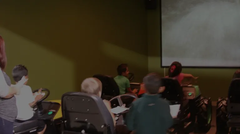 Never been in a tractor before? Jump in the tractor cab inside AgVentures!