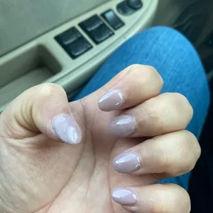 horrible nails not even was cute multiple times by nail tech uneven lines