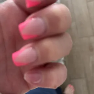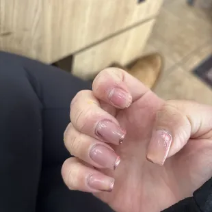 I got gel x nails with chrome on Thursday. On Sunday one popped off. I went back Monday morning and got it fixed and paid to change the color since the chrome was already rubbing off. I went back home and another nail popped off. I went back in the afternoon to get the second one fixed. This morning another nail popped off. 3 nails in 4 days. Insane. I needed my nails done for a trip and do not have time to come back twice a day.