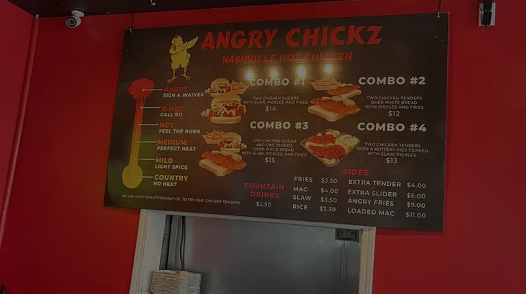 While on a business trip in Fresno, I found this location of Angry Chickz within walking distance of my hotel. After looking over the reviews, I decided to stop in and give it a shot for a late afternoon lunch. The place was not too busy, with one young woman at the front taking orders, running food and helping customers. She was friendly, and I told her I would like Classic #2 (Two Hot Chicken Tenders - Medium Heat - over White Bread with Pickles and Fries). She gave me my receipt and I sat down at the not-totally clean table I could find that didn't have trash or crumbs. Within about 10 minutes, my name was called and I received my food in a To-Go container, even though I said I would be eating here. As a side note, everyone that was eating inside at this location received their food items in styrofoam containers. The restaurant has about a dozen tables of varies sizes, along with seating for about 25-30. The restroom was gender-neutral and average in cleanliness and being stocked with proper amounts of paper products and soap. Opening up my meal, right away I noticed that everything looked pretty tasty. The chicken looked great and was a pretty good size for the price. I took a bite and the chicken was beautifully cooked - perfectly crispy on the outside, wonderfully tender inside, with a nice amount of heat. The bread and pickles were the perfect complement to the large chicken breasts. The fries were very underwhelming. Kind of soggy, not much flavor. Definitely did not finish them, instead focusing my tastebuds on the star chicken. However, the dipping sauce was pretty tasty. Overall, a pretty good option for fast food hot chicken. Nothing beats good ol' sit down smoker style BBQ or friend chicken, but this is a pretty decent "good food, quickly option."