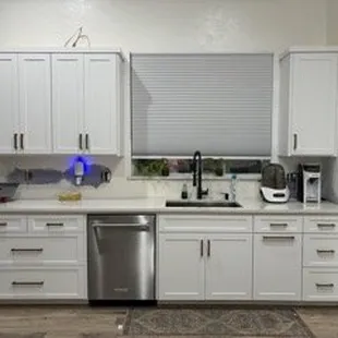 I have only great things to say about this company. We worked with Scott, who was very friendly and worked with us to create the customizations I wanted in my kitchen, unlike the big box stores that wanted me to use standardized cabinets. We paid half of what Home Depot wanted to charge. The finish is beautiful, cabinets and drawers are self closing, great features. I have a small galley kitchen, and with Scott's help, we were able to design a perfect kitchen for our house. Thanks Scott, great job! I love my kitchen!