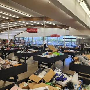 This is shady business practice and false advertising. They lead you to believe that you're coming here for huge deals and discounts, but in reality, only the things on the tables are discounted and everything else is priced whatever they feel, especially since nothing is really labeled with a price. They have a huge inventory of different products from returns and overstocks, but it's mainly damaged and defective returns. To the untrained eye, these products seem brand new, but I worked with product damages and defects at my last job and I can assure you that the main majority of those products were indeed damages and defects. There's no issue selling and buying a damaged/defective item AS LONG AS everything is addressed and open to people to know, but they don't do that. They hide the condition of the product from you and don't let you take the product out to look at for consideration. It's buy at your own risk. The tables have the discounted items, and those items range from women's/men's/kids clothes to throws and small products like light bulbs. Rummaging through those tables is dirty and dangerous, so I advise gloves and hand sanitizer. They have loads of tables with SHEIN clothes, which is kind of neat and are heavily discounted with a bundle deal so that isn't too bad, but it doesn't make up for the rest of the store, and you can tell the clothes are returns as well. There are many different "deals" stores to shop at in Fresno, please shop at one with actual deals and excellent customer service because this isn't the one.